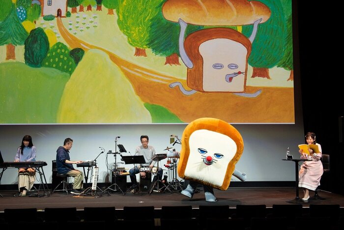 イベントでは楽器の⽣演奏とともに、絵本「パンどろぼう」シリーズ全5作の読み聞かせが⾏われました。