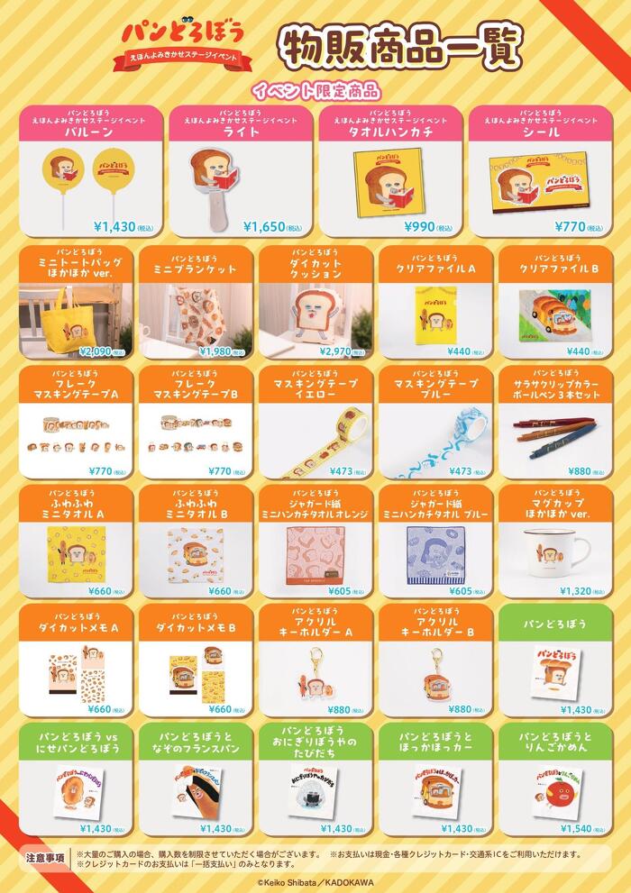 イベント描き下ろしイラストを使用した「イベント限定商品」のほか、最新刊「パンどろぼうとりんごかめん」の書籍も販売しております。ぜひお立ち寄りください。