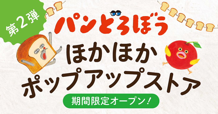 大人気絵本「パンどろぼう」シリーズのグッズ販売のほか、パンどろぼうと一緒に写真が撮れるフォトスポットを設置した【ほかほかポップアップストア 第2弾】を全国の書店にて開催します!