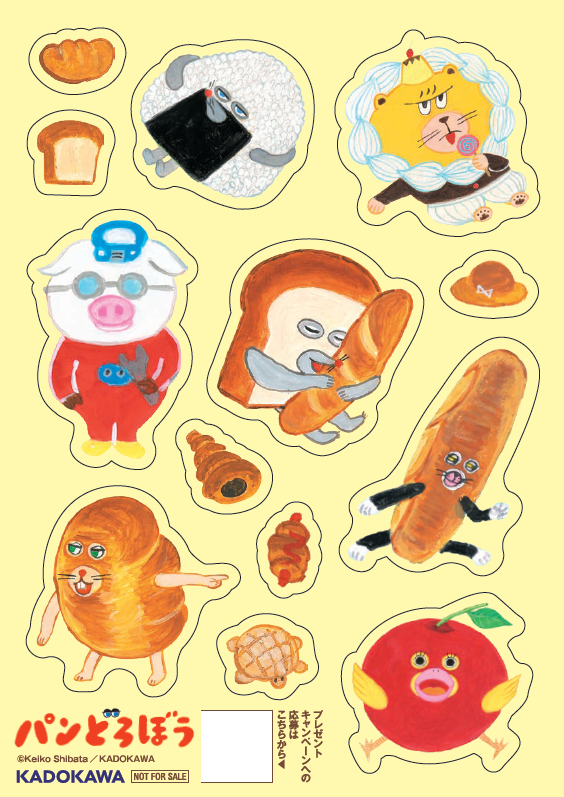 「パンどろぼう」店頭フェアの対象商品「パンどろぼう」シリーズ13作品のいずれかをお買い上げいただいた方へ、1冊購入につき1枚「パンどろぼうオリジナルシール」をプレゼントします。