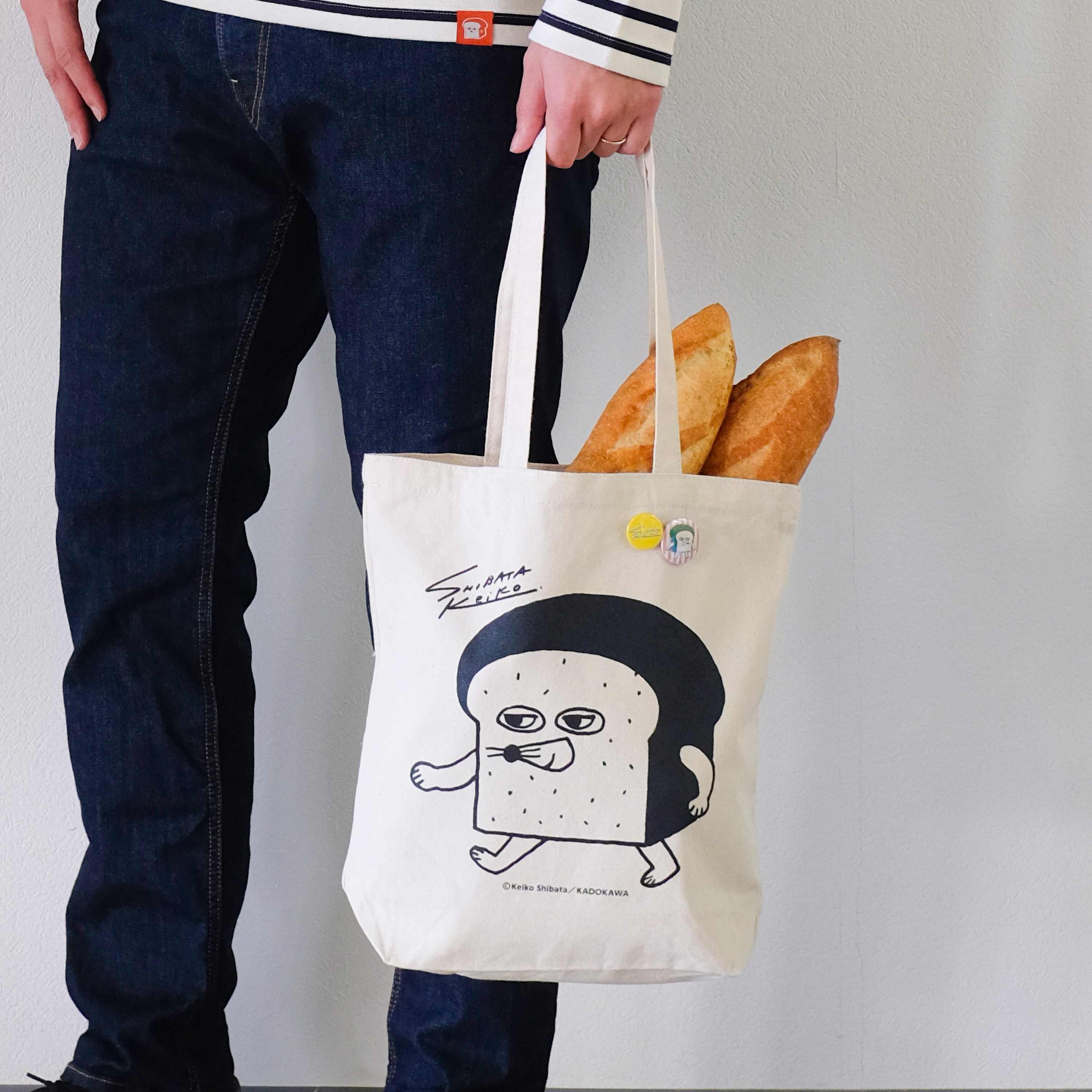 お買い物やおでかけに使えるトートバッグと、トートバッグにつけてもボーダーシャツにつけても可愛い缶バッジ2個セットです。
