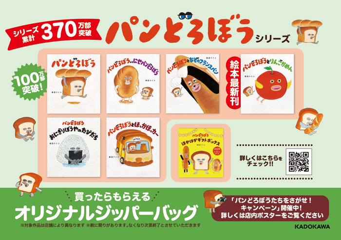 新刊『パンどろぼうとりんごかめん』の発売を記念し、全国の参加書店にて『パンどろぼう』シリーズのフェアが実施されます!