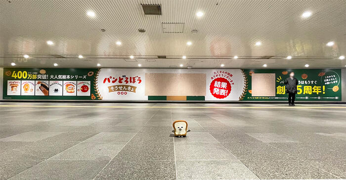 上位に選ばれたキャラクターの大型ピールオフ広告が渋谷駅に登場しました!