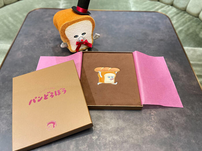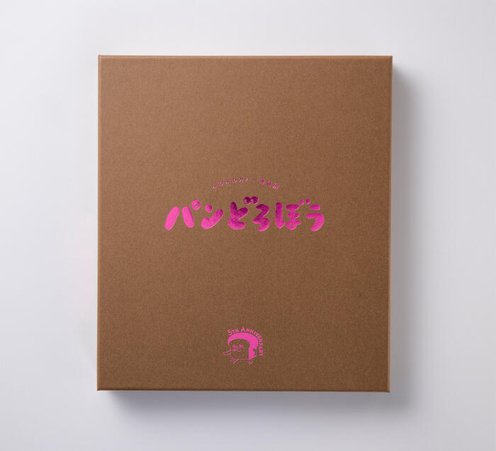 特装版の絵本を収めているのは豪華な化粧箱。キラキラなピンクの箔押しはパンどろぼうらしい遊び心を感じる仕上がりです。