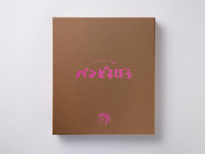 ピンクの箔押しを施した豪華化粧箱は、パンどろぼうらしい遊び心を感じる仕上がり。