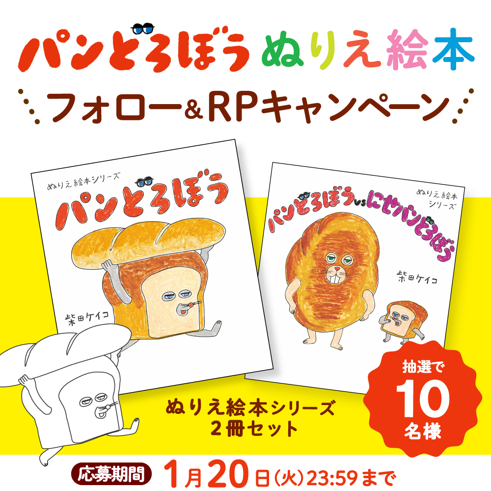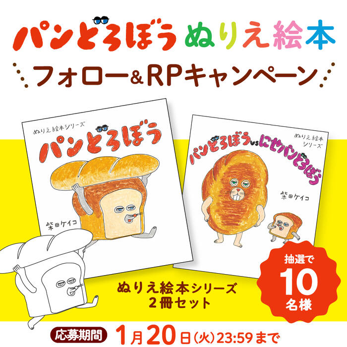 Xのパンどろぼう公式アカウント(@pandorobou)をフォローし、キャンペーンポストをリポスト(RP)していただいた方の中から、抽選で10名様にプレゼント!