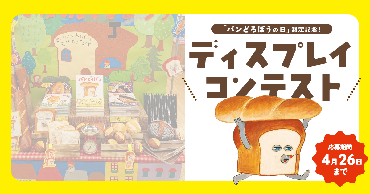 ・店頭装飾の際、キャラクターの正体(パンどろぼう=ねずみ など)についてはネタバレ厳禁にてご留意いただくようお願いいたします。ネタバレが含まれる場合は、選考外とさせていただきます。予めご了承ください。