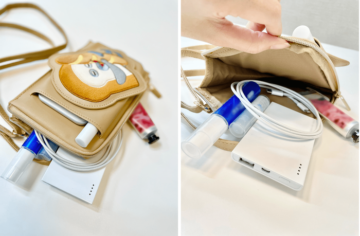 両手がふさがらずコンパクトなので、さっと取り出したいものを入れるととっても便利!