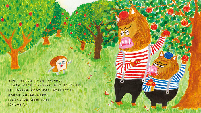 「うまそうなパンが あらわれたブヒ」「たべてやるブホ」