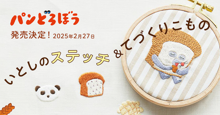人気絵本シリーズ「パンどろぼう」のステッチや小物を手づくりできる手芸本『パンどろぼう いとしのステッチ&てづくりこもの』を2025年2月27日に発売します。