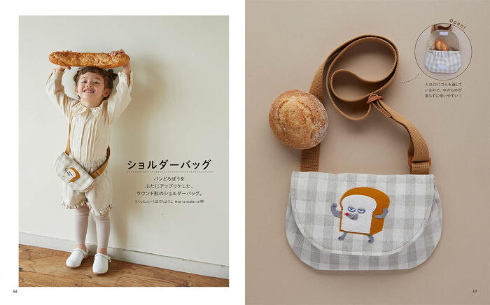 また、フェルトのマスコットやバッグ、ポーチなどの小物、さらには通勤通学グッズの作り方もご紹介。手作りで『パンどろぼう』の世界をお楽しみいただけます。