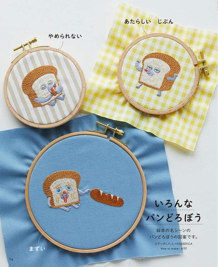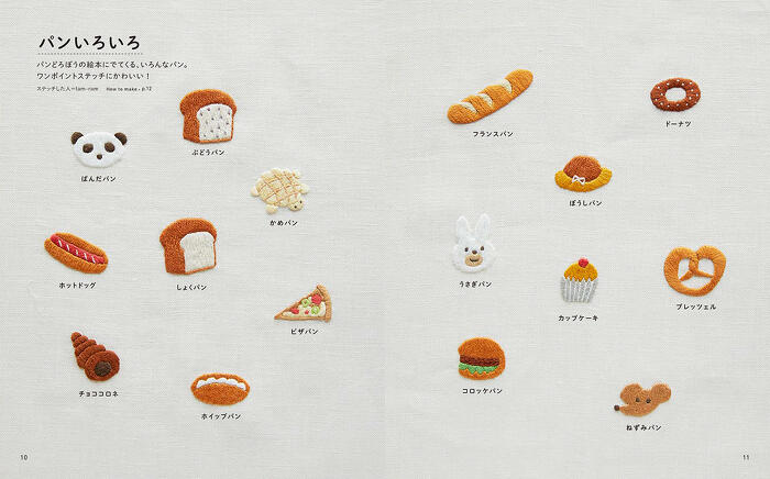 いろんなシーンのパンどろぼうから、にせパンどろぼうやなぞのフランスパンなどシリーズに登場するキャラクター、絵本にでてくるパンやおにぎりまで、かわいい刺しゅうが作り方&実物大図案つきで63点掲載。刺しゅう図案はすべてダウンロードも可能!