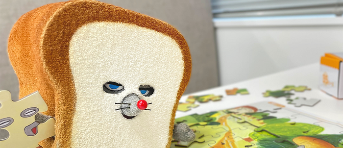 2/19発売、『パンどろぼうのジグソーパズルセット』を、パンどろぼうと一緒にご紹介します。