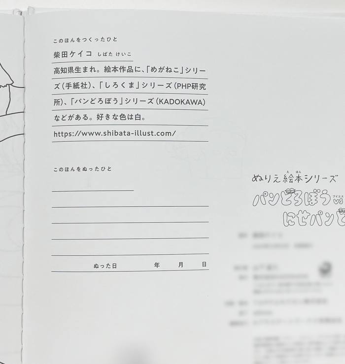 前作の『ぬりえ絵本シリーズ パンどろぼう』同様に、一から好きな色を塗って、あなただけの特別な絵本がつくれます。