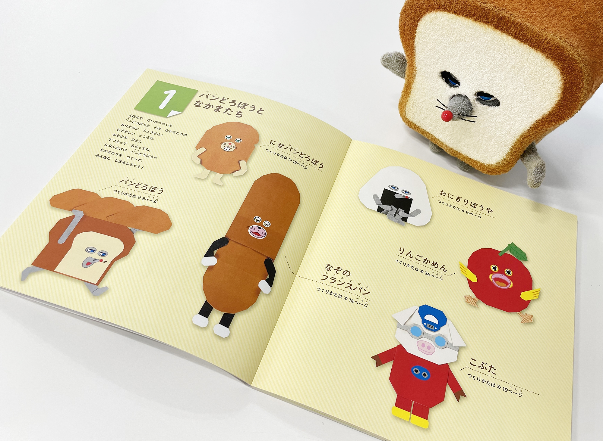 6巻までに登場するキャラクターの他、パンやおにぎりなどが多数掲載されており、市販のおりがみで楽しく遊べます。